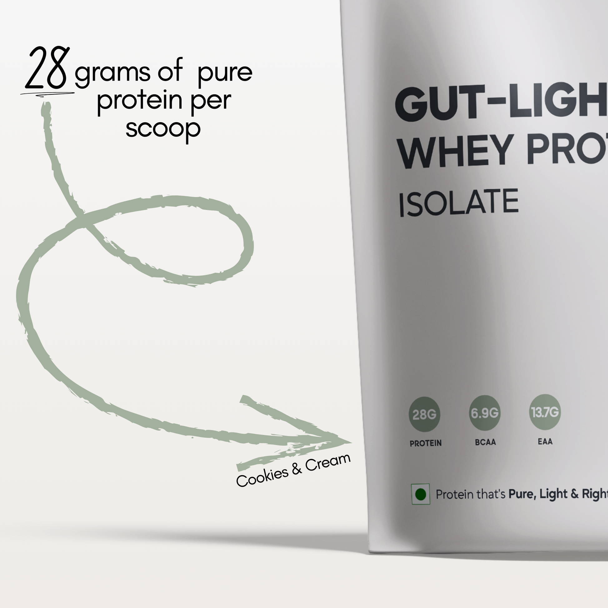 Gut-Light Whey Protein Isolate - Cookies & Cream | Pure Protein - No Gimmicks